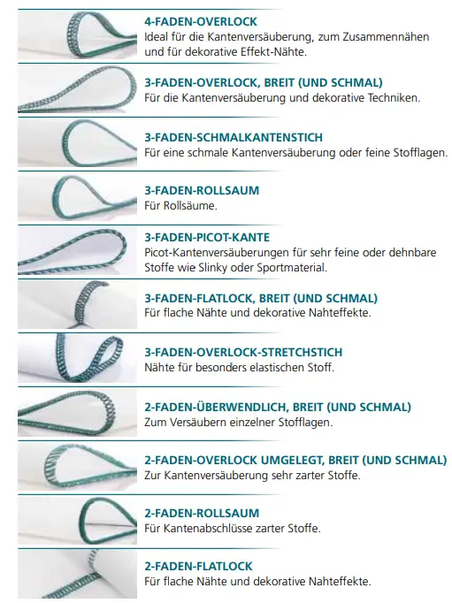 - Einstellen von Stichlänge, Stichbreite und Nähfußdruck