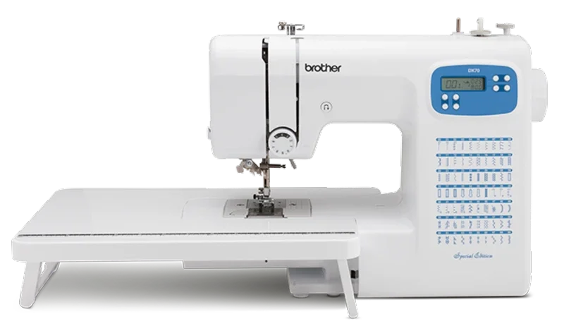 Kompakt und dennoch mit einer großen Auswahl an Stichen, ist die Brother DX70SE mit vielen Funktionen und Zubehör ausgestattet, damit Sie im Handumdrehen nähen können!