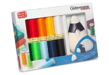 10 Spulen Allesnäher 100m für schöne und starke Nähte in einer fröhlichen Farbsortierung und eine Kreiderad Maus von PRYM. Ideal geeignet zum freihändigen Anzeichnen und Markieren auf Stoffen.